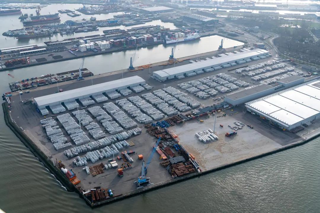 Lara explains how future needs have been considered, such as dividing the warehouses into compartments for the storage of merchandise goods. “These are massive warehouses, over 40 meters wide. One warehouse is 252 meters long and the other 408 meters. That’s why we carefully considered the layout of the warehouses and the creation of flexibility for the future. The terminal is not only intended for aluminum and other metals but also for project cargo, such as offshore platforms for wind turbines.”